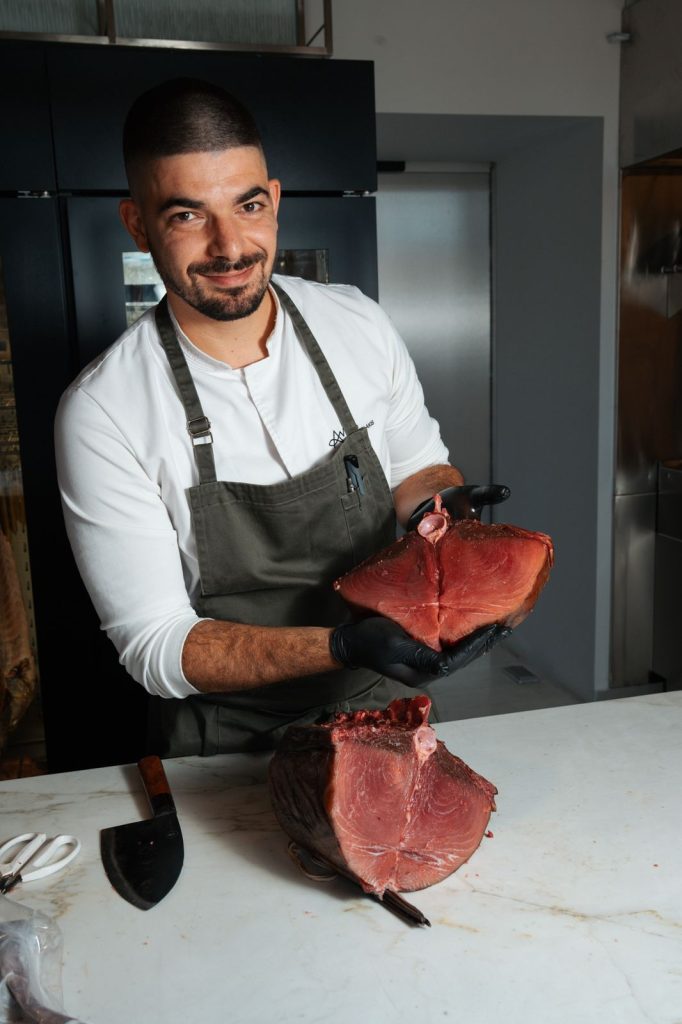 Nikos Apostolakis, originating from Crete and deeply connected to the sea, has developed a comprehensive professional model based on fish aging, the proper utilization of raw ingredients, and the management of the whole fish with a philosophy similar to that applied to meat.